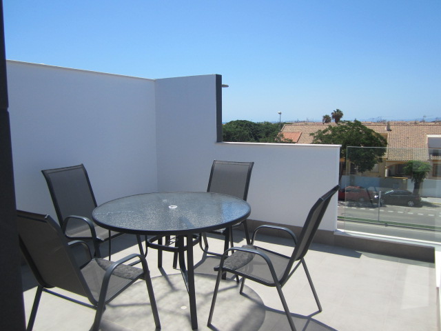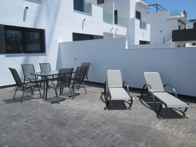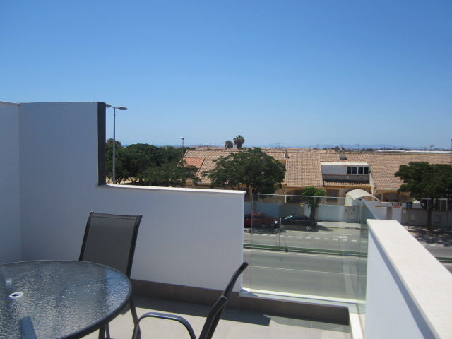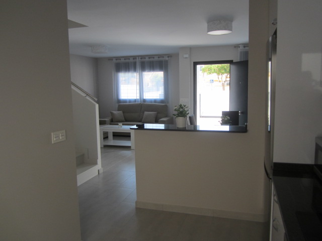 A three bedroom, two bathroom townhouse with a private solarium. The property is set in the sort after town of Torre de la Horadada. The golden beach and marina where there are numerous bars and restaurants are within walking distance, as well as the beautiful Latino square with its array of international restaurants. The main town of Pilar de la Horadada is five minutes away with supermarkets, a cinema and sports facilities.