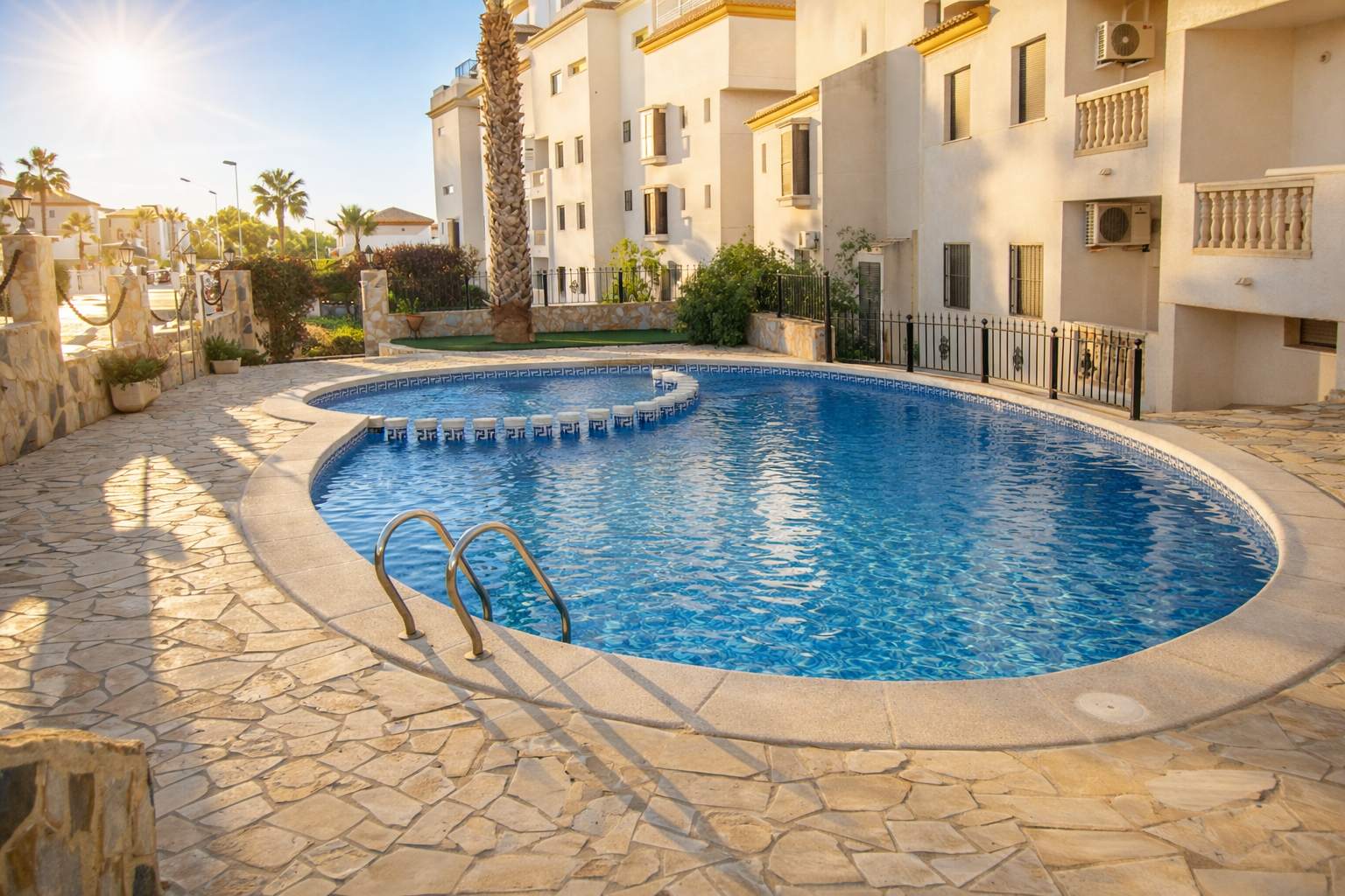 A three-bedroom, two-bathroom apartment located on Las Ramblas Golf Course, which is just one of four 18 hole championship courses within ten minutes of this property. There are numerous bars and restaurants in the very popular La Fuente Commercial Centre just a few minutes away. The local bus service is 15 minutes away, giving you access to the Costa Blanca and the beautiful blue-flag beaches of the area.