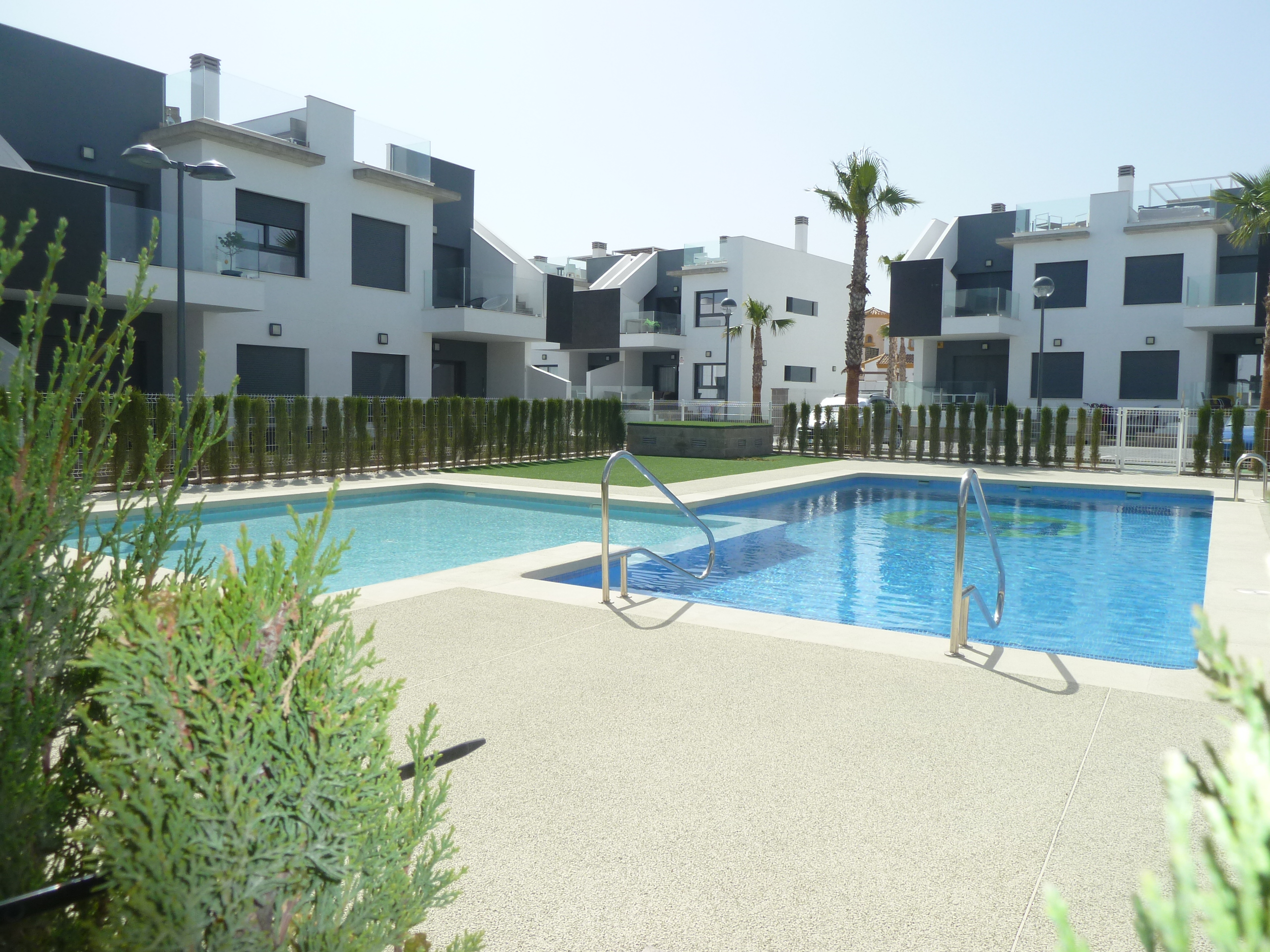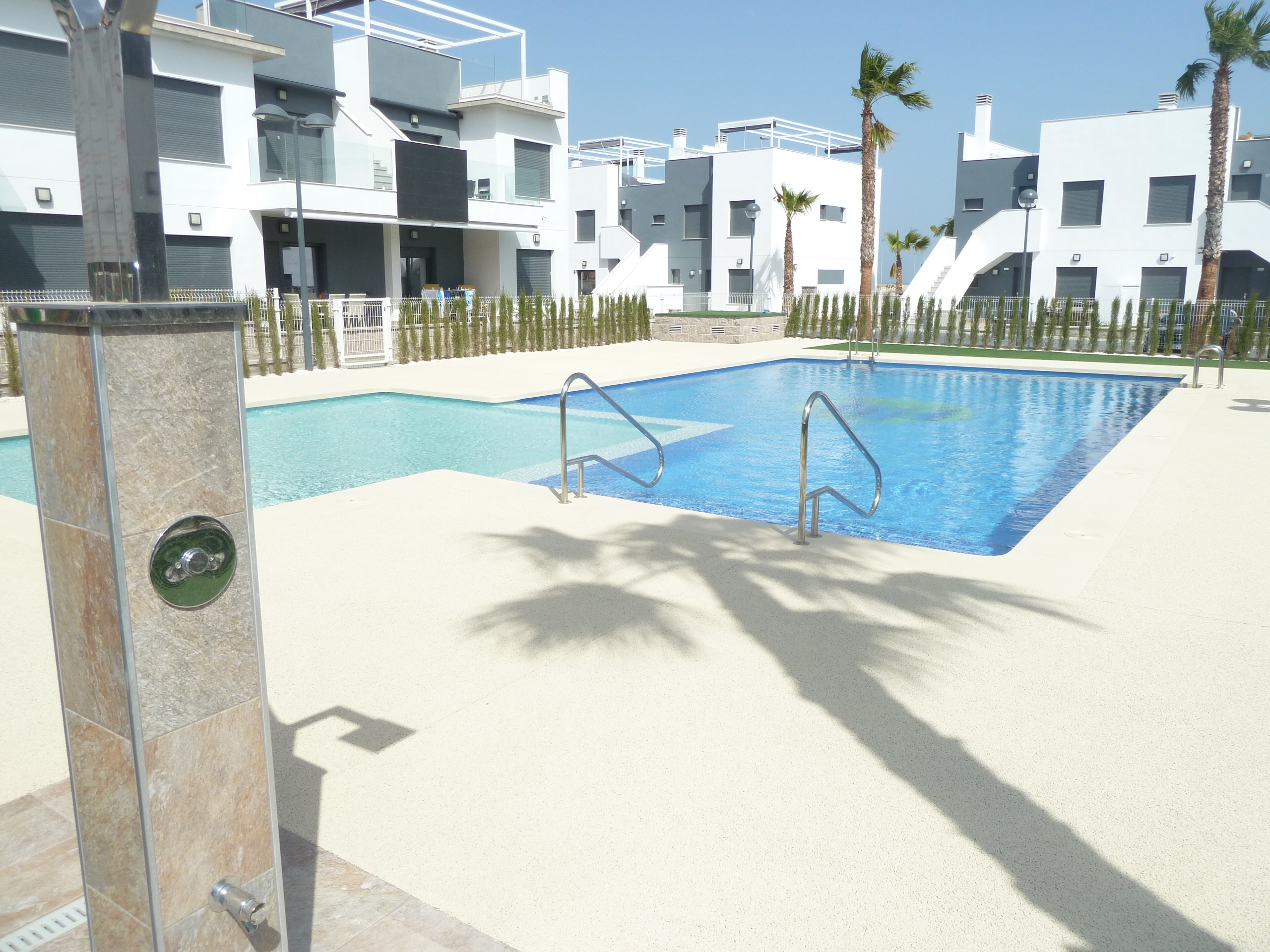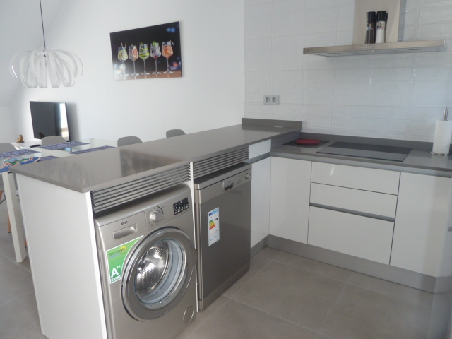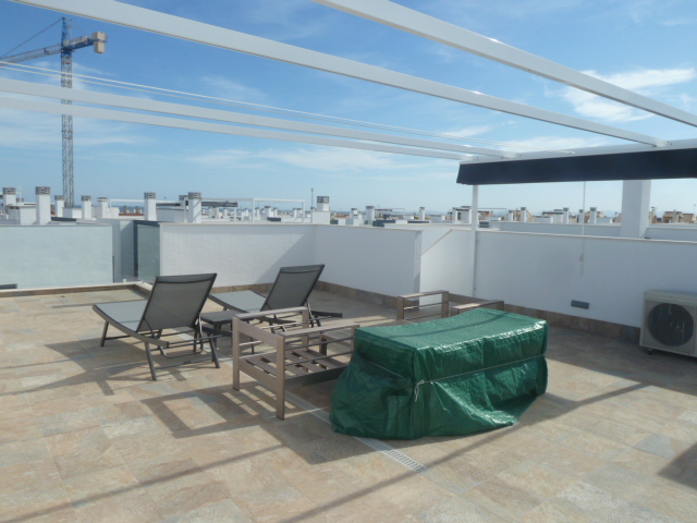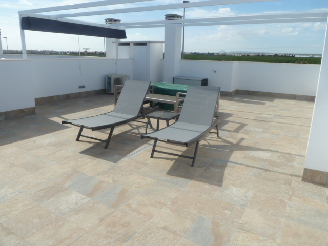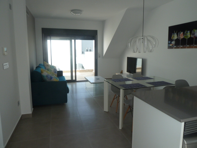 A top floor, two bedroom, two bathroom duplex with its own private solarium. The property is located in the very popular village of Pilar de la Horadada. The blue flag beaches of Torre de la Horadada and San Pedro del Pinatar are a short drive away. The main town nearby with a vast selection of bars, restaurants, and supermarkets. The municipality has a well appointed sports centre, with indoor and outdoor pools, paddle courts, tennis, football pitches and skate boarding.