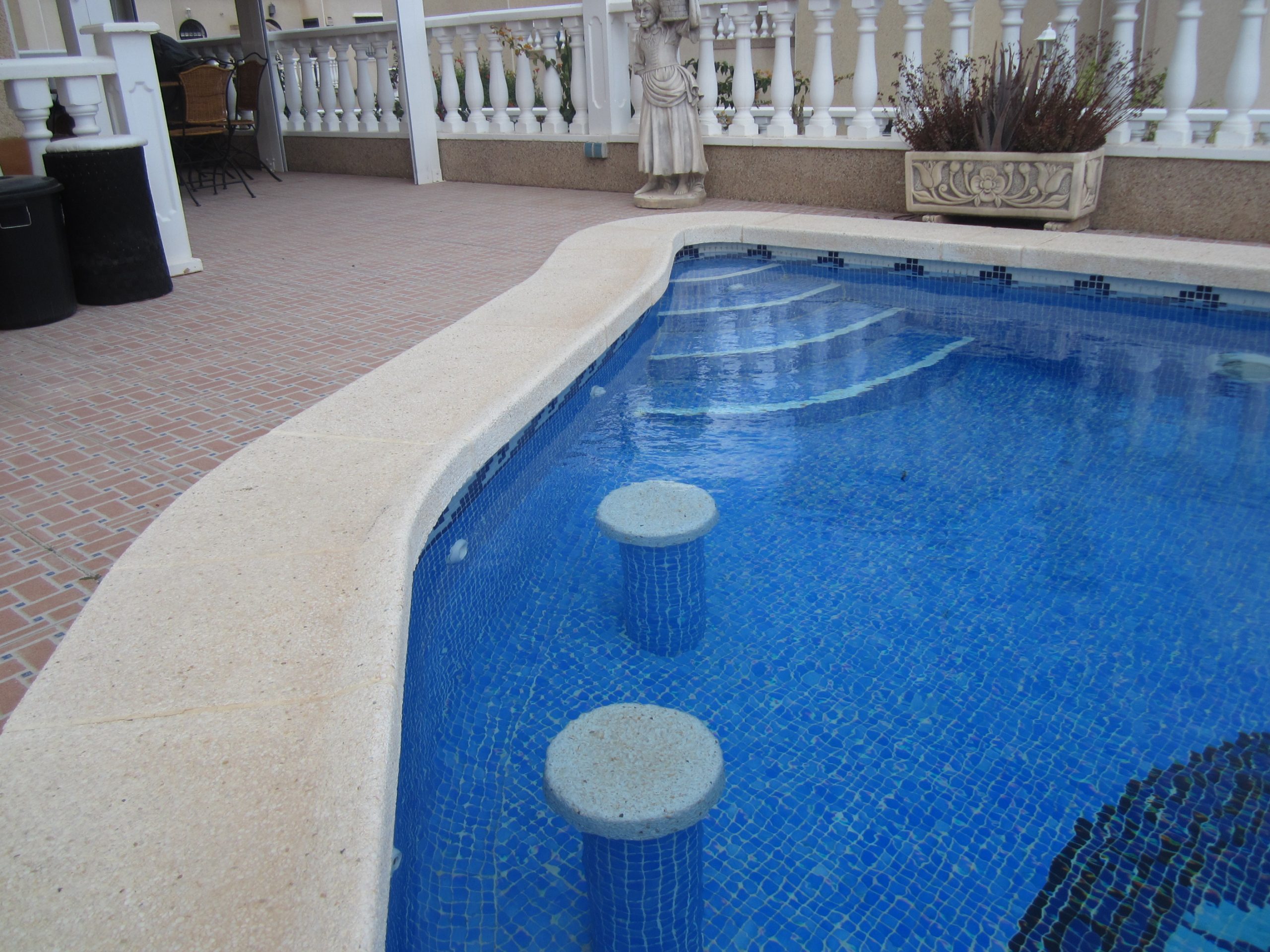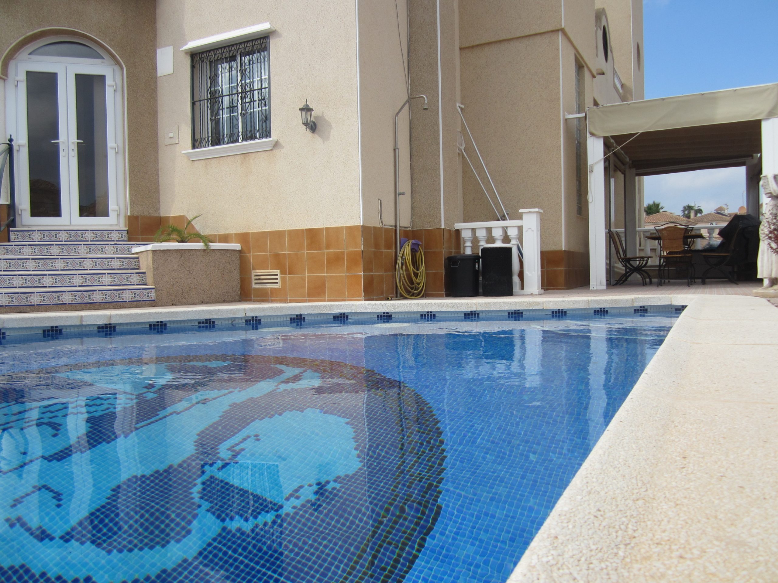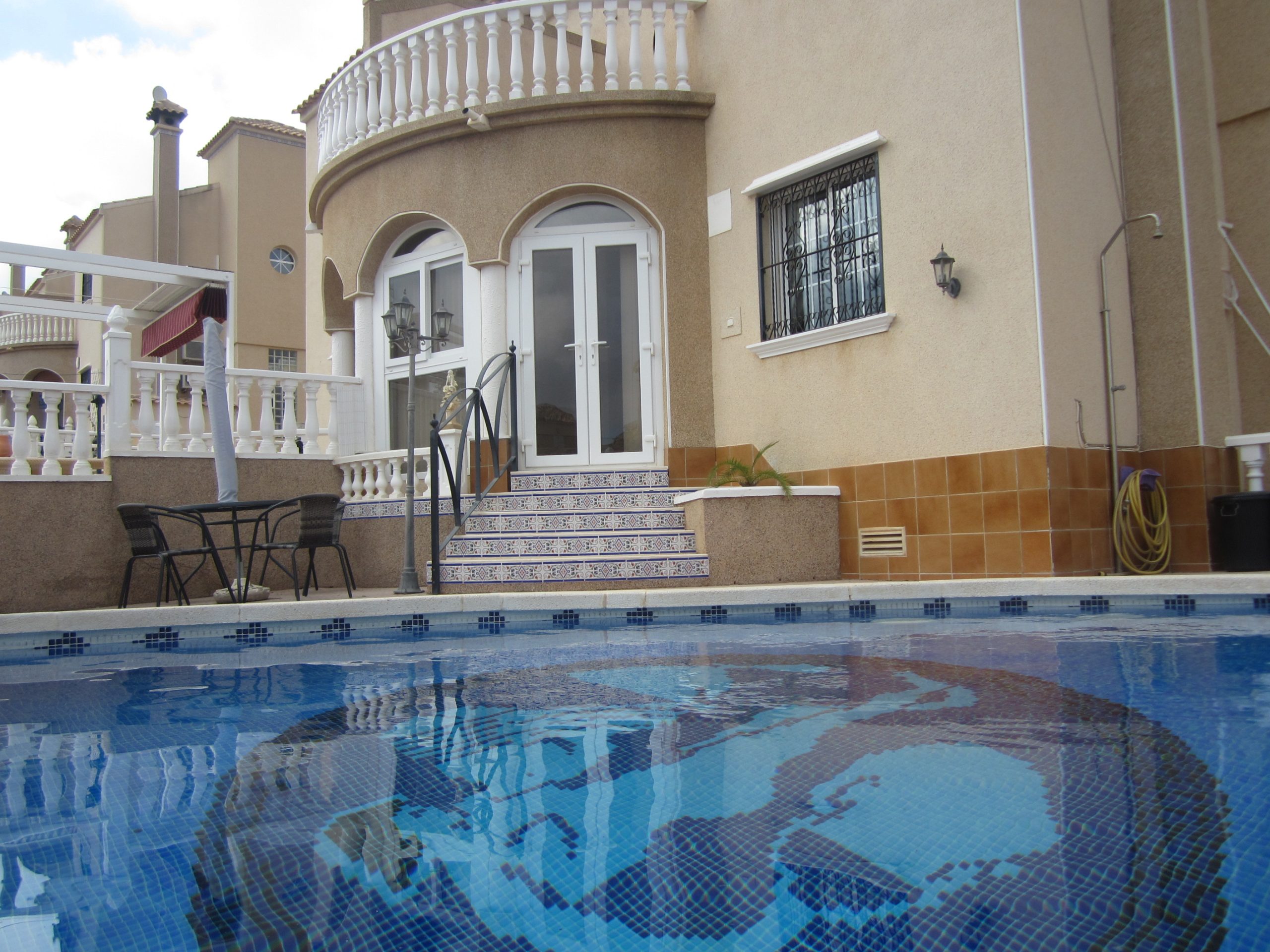 A three bedroom, two bathroom, quad house with a private pool and garden. The property is situated on the Villa Costa urbanisation between three 18 hole championship golf courses and the fantastic blue flag beaches of Campoamor and La Zenia. There are many bars and restaurants within easy walking distance, and the golden mile of bars of Cabo Roig just a short drive away. La Zenia Boulevard with its fantastic choice of shops and restaurants is a ten minute drive away.