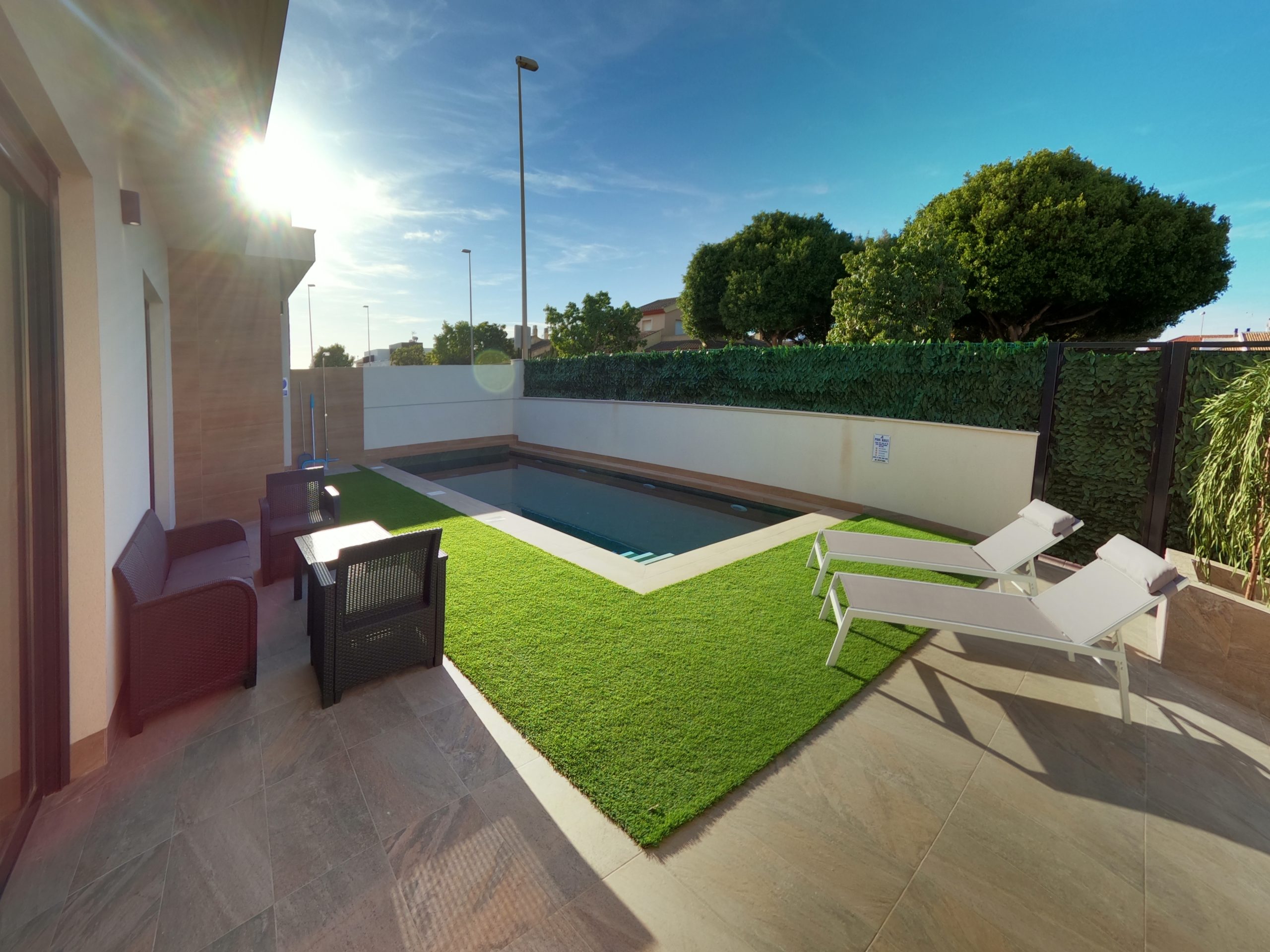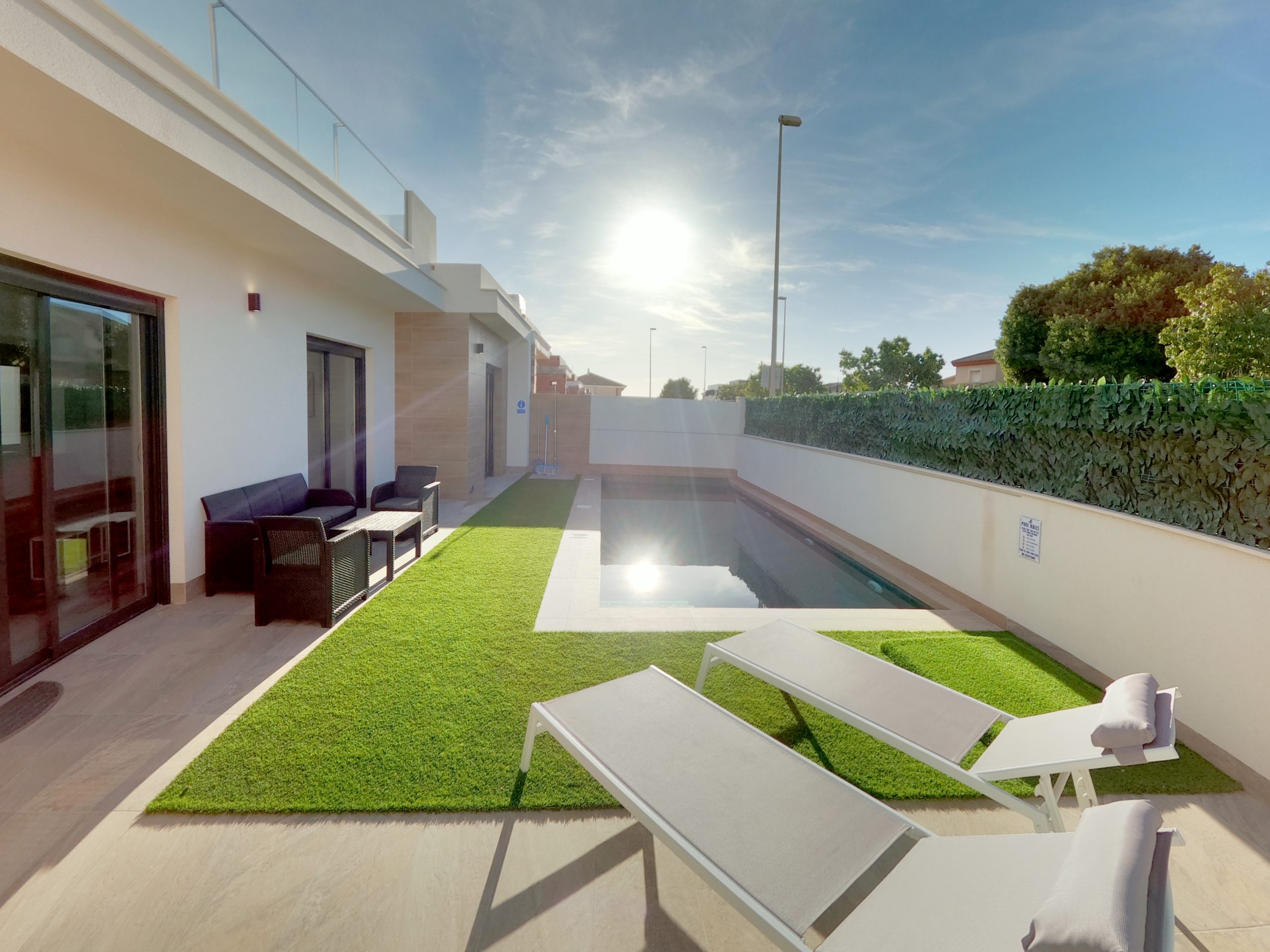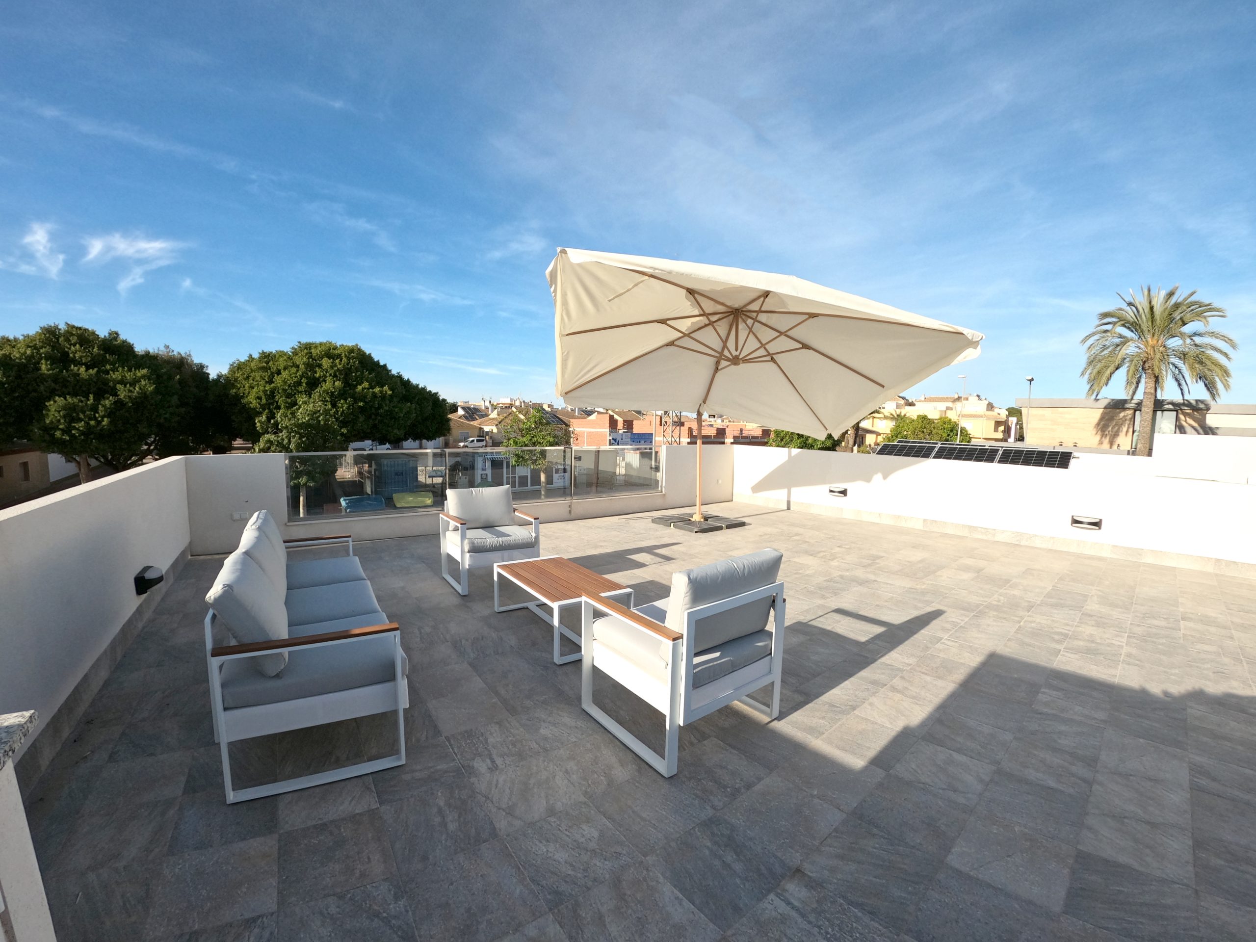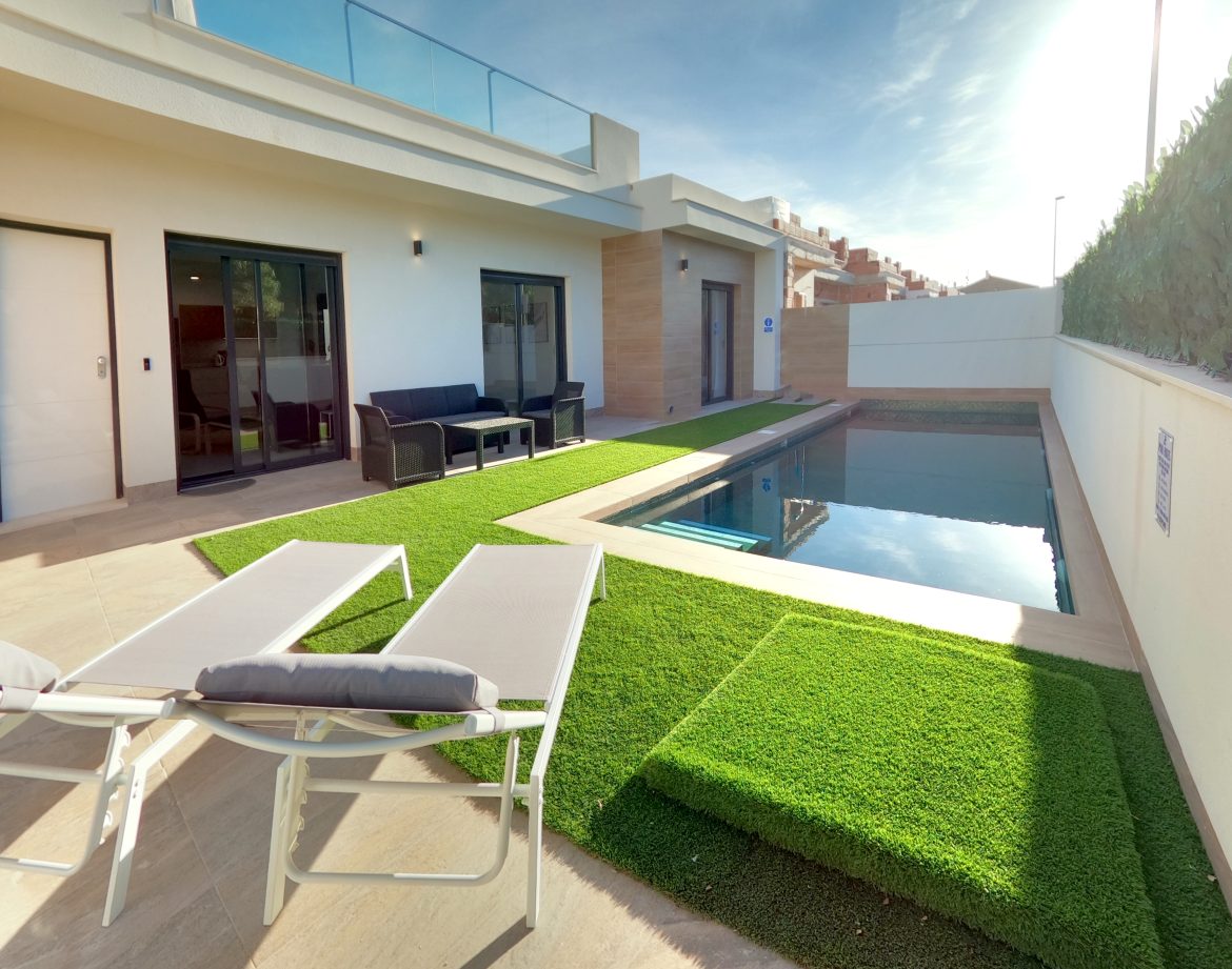 Available for long-term rental, this fantastic house is located in Dolores de Pacheco – a peaceful and well-connected area near Los Alcázares, several golf courses, and the beaches of the Mar Menor. The property features 3 spacious bedrooms, 3 bathrooms, a private pool, a large solarium ideal for sunbathing and relaxing, and a great barbecue area perfect for enjoying time with family and friends. The house is fully equipped and ready to move in, with a fitted kitchen, air conditioning, and bright, functional living spaces. Dolores de Pacheco offers excellent quality of life in a safe environment, with nearby services and a privileged climate all year round.