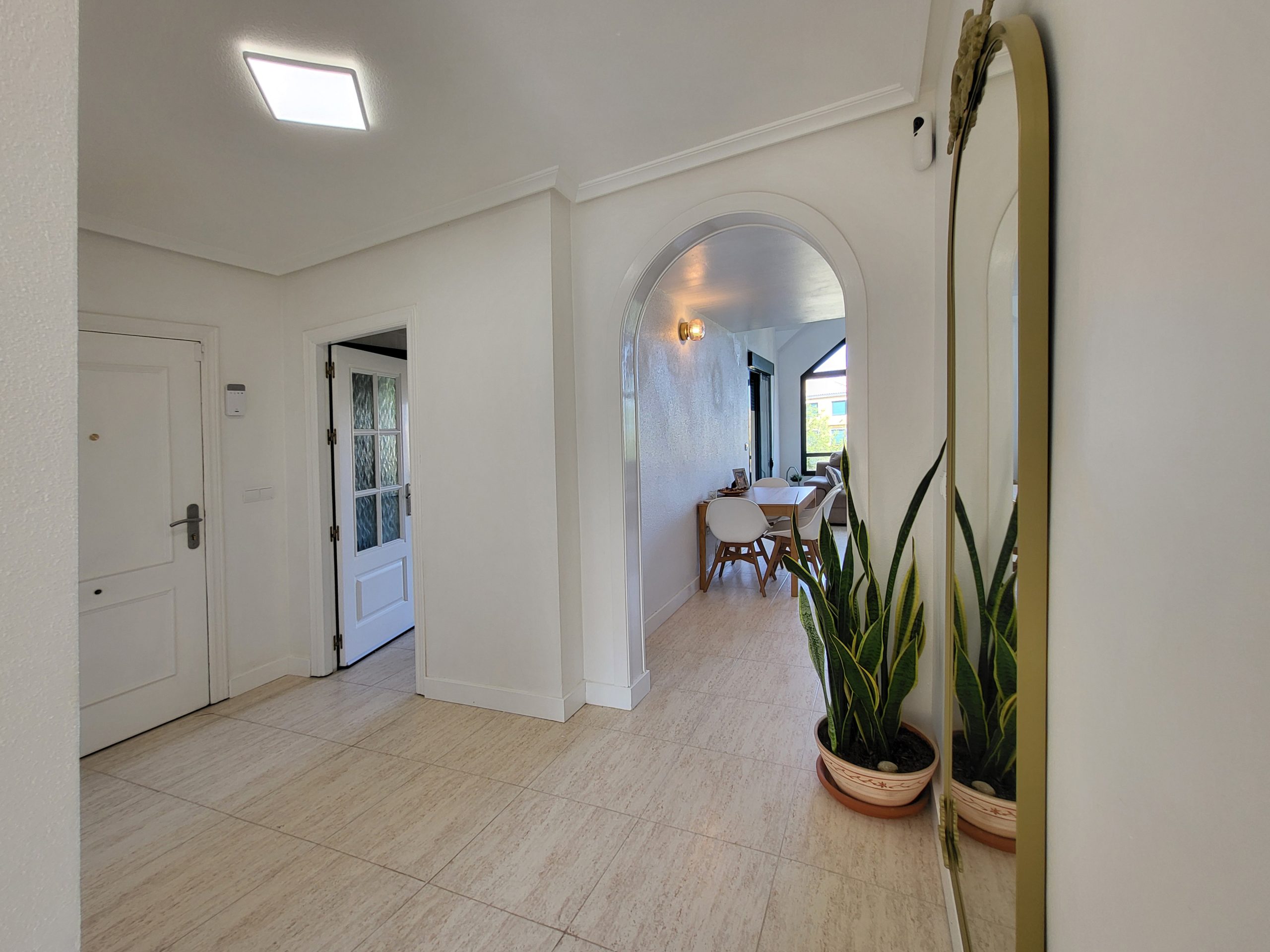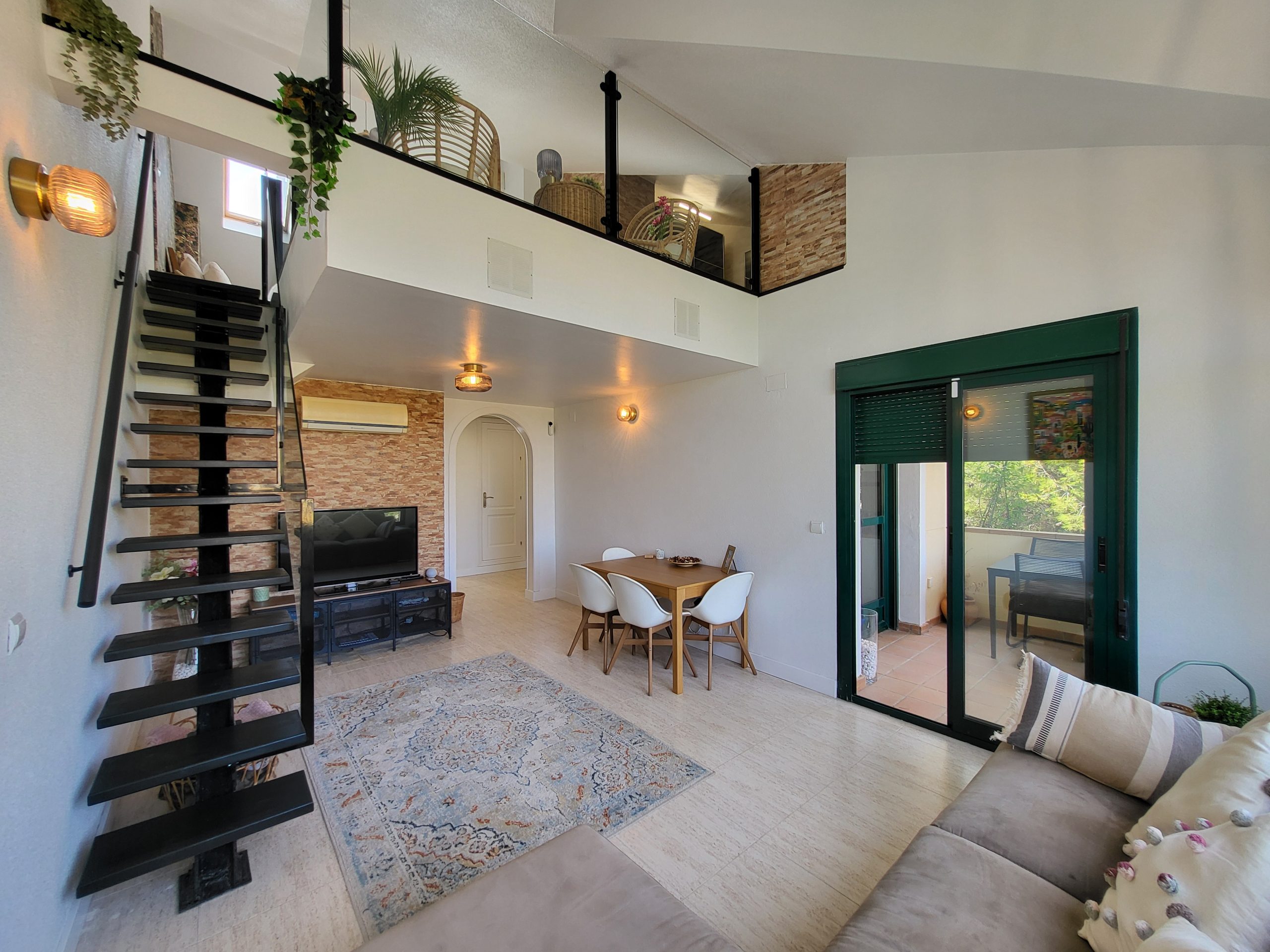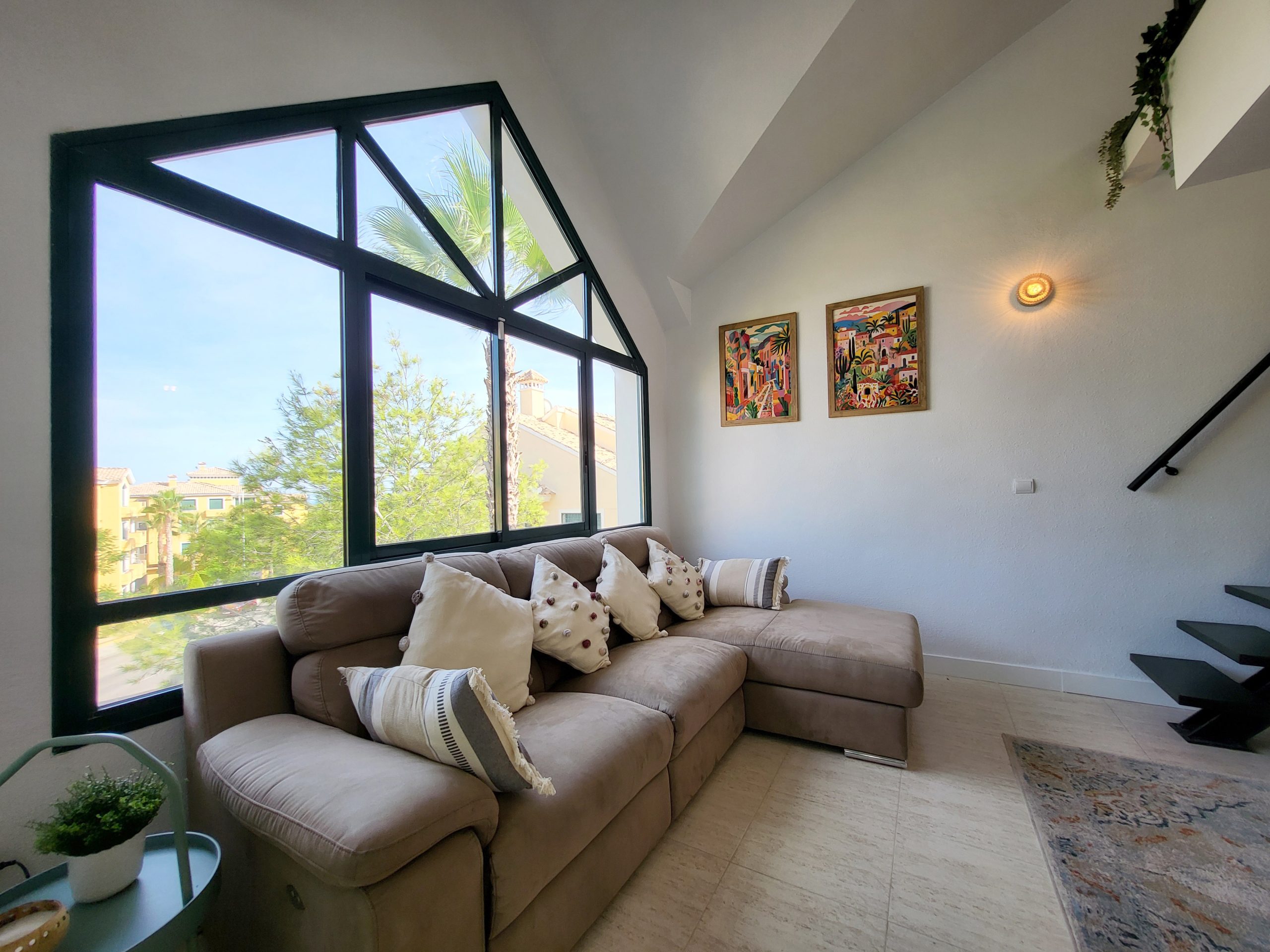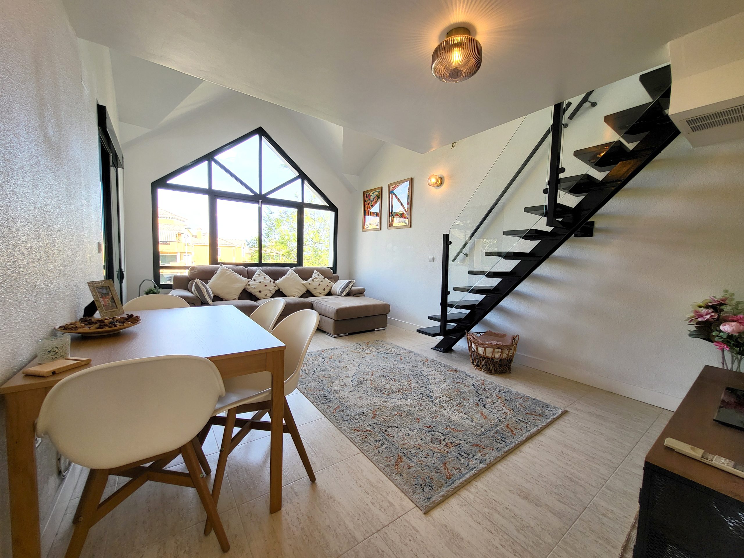 Modern and bright top-floor duplex located in the sought-after area of Lomas de Campoamor. Fully furnished and tastefully decorated, the property features a spacious mezzanine with a private bathroom and large built-in wardrobes. Enjoy sea views from the private terrace, as well as access to a communal pool, included internet service, and a fully equipped kitchen. This cozy and welcoming home is ideal for holiday and winter stays.